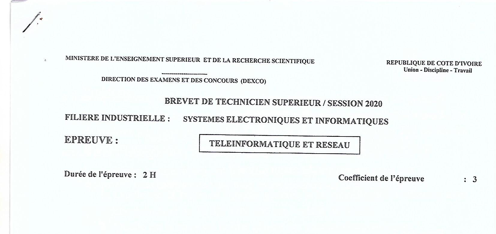 BTS SEI TELEINFORMATIQUE ET RESEAU Session 2020