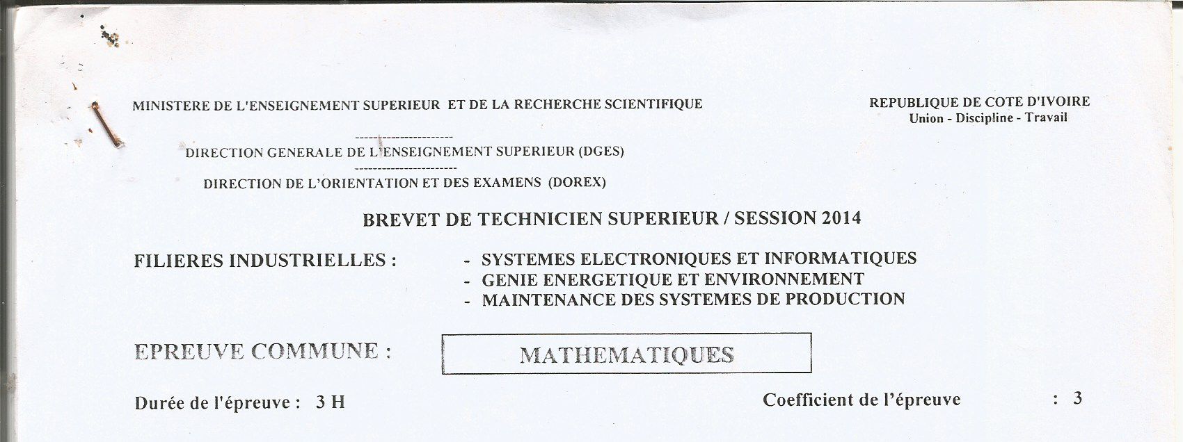 BTS SEI MATHEMATIQUES Session 2014