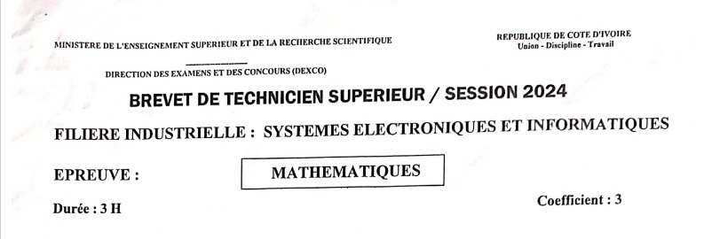 BTS SEI MATHEMATIQUES Session 2024