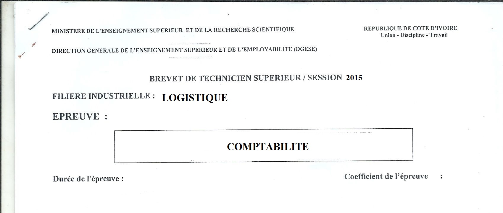 BTS LOG COMPTABILITE Session 2015