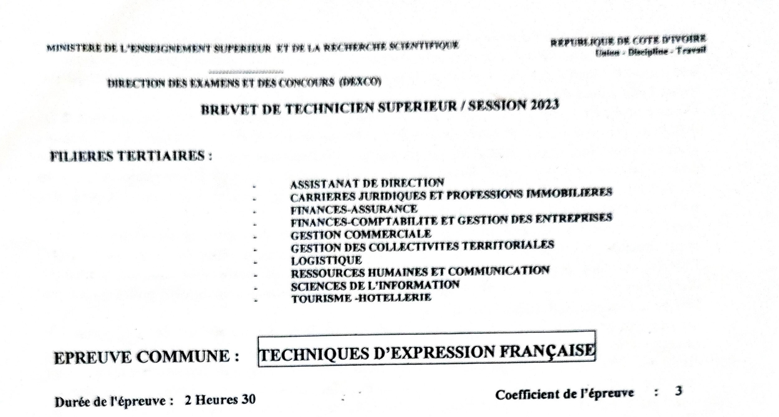 BTS TH TECHNIQUES DEXPRESSION FRANCAISE Session 2023