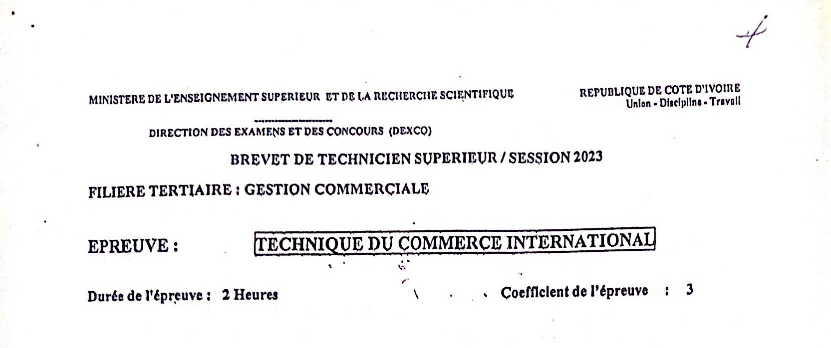 BTS GEC TECHNIQUE DU COMMERCE INTERNATIONAL Session 2023