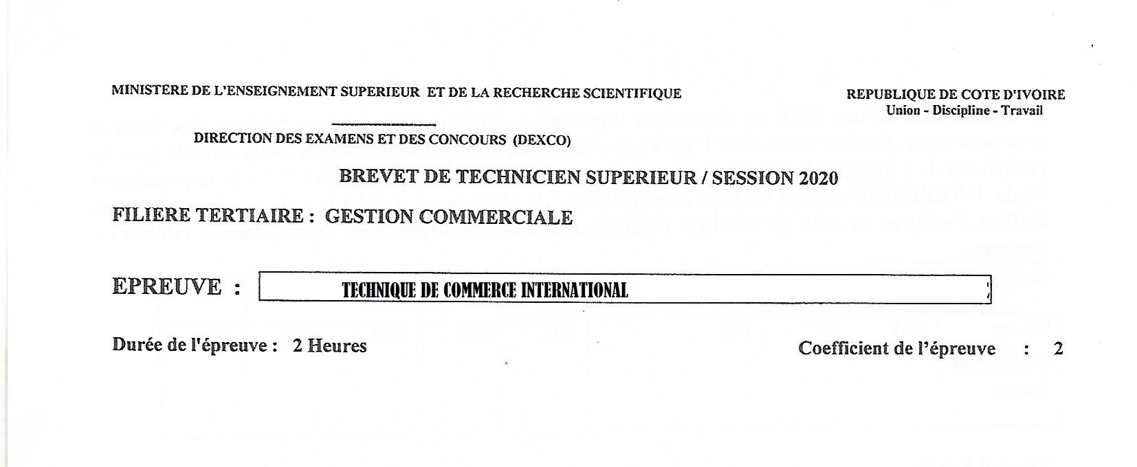 BTS GEC TECHNIQUE DU COMMERCE INTERNATIONAL Session 2020
