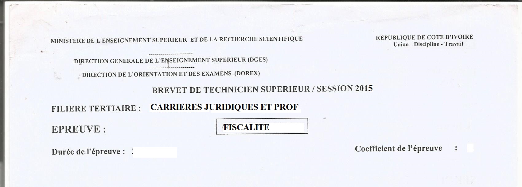 BTS CJPI FISCALITE Session 2015