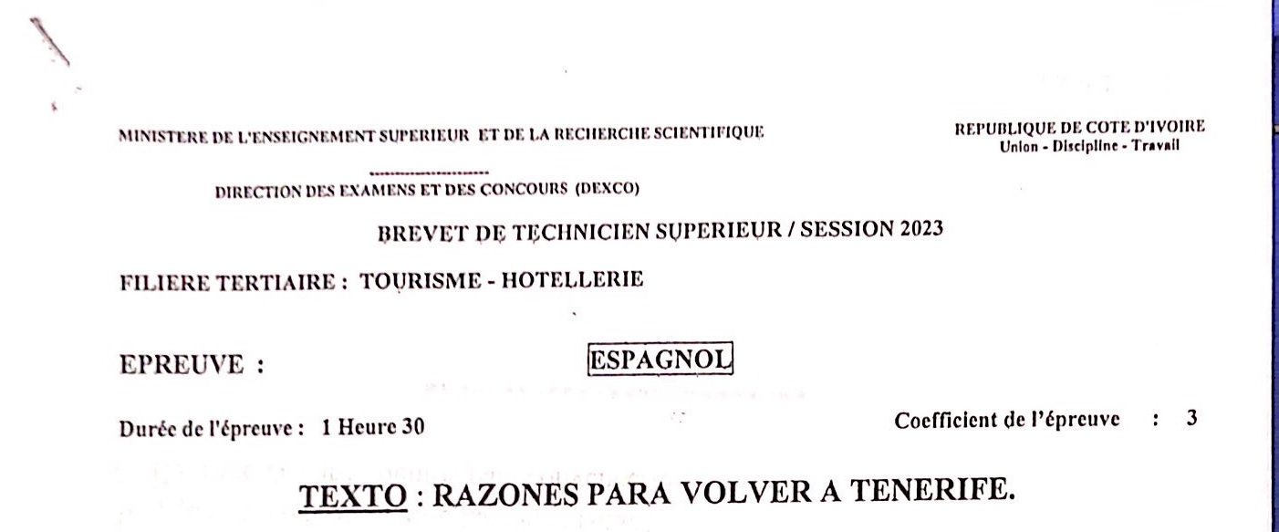 Sujets - TOURISME ET HOTELLERIE / ESPAGNOL